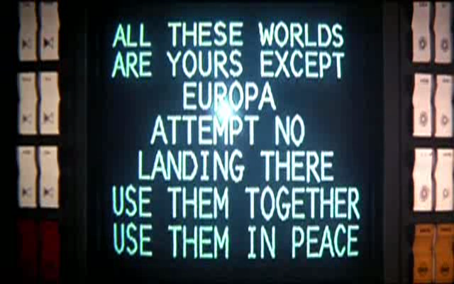 I like that 2010 doesn’t answer all the questions 2001 raises, and where it does, it seems to answer them with more questions, for example, 2001 did not show any aliens on-screen on the advice of Carl Sagan, who famously said that aliens would look so different to us, that trying to create that one screen could never do the truth justice. In the end. HAL becomes a hero of sorts, David Bowman from the original appears, but his appearance seems to suggest he has become a higher life-form of sorts, and the monoliths, shown in the first movie to be somehow responsible for advances in the evolution of man, now makes another impact on the evolution of man, stopping the Cold War and heralding a new era for the Earth. Never explaining what the monoliths are, just what they are capable of. As well as this, new life is just beginning on Jupiter’s moon Europa, who may one day join with humanity the way the east and west have now joined together on Earth.