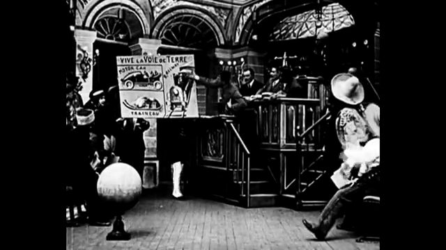 There really is some impressive imagery and designs here, with the areo-bus flying through the sky carrying the crew, along with all the other craft that are also racing to get to the North Pole (remember that flying aircraft were very much in their infancy, with the Wright Brothers famous flight taking place in 1903). All of the different designs of the aircraft are imaginative, almost as if it was a prototype It’s A Mad, Mad, Mad, Mad World. The aero-bus’s travel through the constellations again provide an ample opportunity to create all of the images of zodiac with fun paintings and costumes. This scene does drag on with no real purpose though. The highlight of the film is probably the fight at the north pole with the ice-giant; brought to life with some impressive theatrics and moving parts. Conquest of the Pole is classic Melies: giving the viewer impressive visuals, camera tricks and theatrics that stand as a monument to his influence and mastery on the medium. It doesn’t make much use of the larger runtime, and as such some parts go on longer than necessary, but there’s more than enough spectacle and fun here to enjoy the journey.