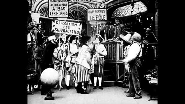 THOUGHTS/ANALYSIS: Conquest of the Pole is 1912 sci-film by George Méliès. Combining inspiration from Jules Verne’s Voyages Extraordinaires stories and real-world events, the story revolves around various explorers trying to reach the North Pole. At a meeting of the Aero Club in Paris, Professor Maboul reveals his “aero-bus” that he believes will be able to make the perilous journey, and the club nominate a crew of members from across the world to join him. The plot of the film is simple enough; following the construction of the aero-bus, it’s launch, and journey to the pole. There’s additional elements too, such as the inclusion of suffragettes that gate-crash the meeting with a protest, and even try to reach the Pole themselves. The film itself is classic Melies: it takes the viewer on an adventure to fantastical places brought to life with well designed characters, creatures and Melies classic camera tricks that still captivate over one hundred years later. While it does have a longer running length than Melies’ older movies such as Voyage to the Moon, and has a more fleshed out story, some of the scenes do drag on a little. The problem being that filmmaking had moved on a little from Melies earlier films, but he was still doing the same thing. Like I say, they’re not bad, it’s just a longer length film needed something a bit more to carry the story, such as intertitles that contained the dialogue: without that, the longer scenes don’t really deliver as much as they could.